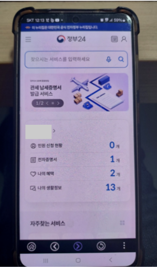 ▶정부 24 앱 설치 후 실행합니다.