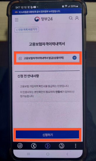 고용보험 피보험자격 이력내역서 모바일 발급방법