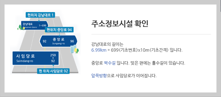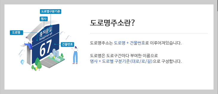 도로명주소는 어떤 규칙을 가지고 만들어졌는데 확인해 보자면 다음과 같습니다.
