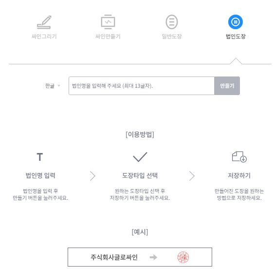 이름 입력 >> 도장타입 선택 >> 저장하기