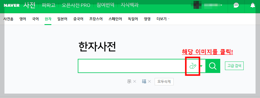 네이버 한자사전 필기인식, 부수찾기 (+바로가기)