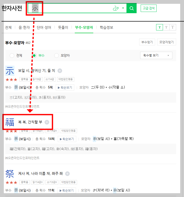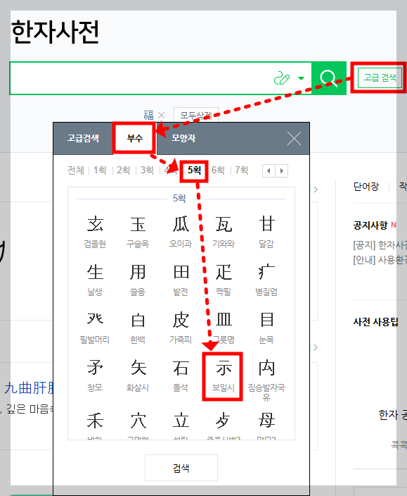 1️⃣ 네이버 한자사전에서 ‘부수 검색’ 선택