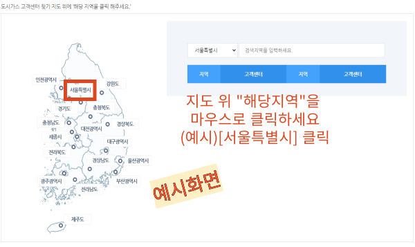 여기서 본인의 지역에 해당하는 도시가스 공급 회사를 검색하여 찾을 수 있습니다.