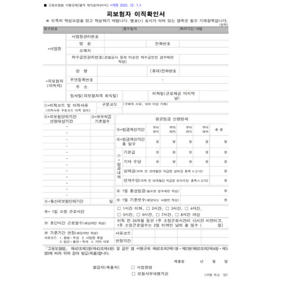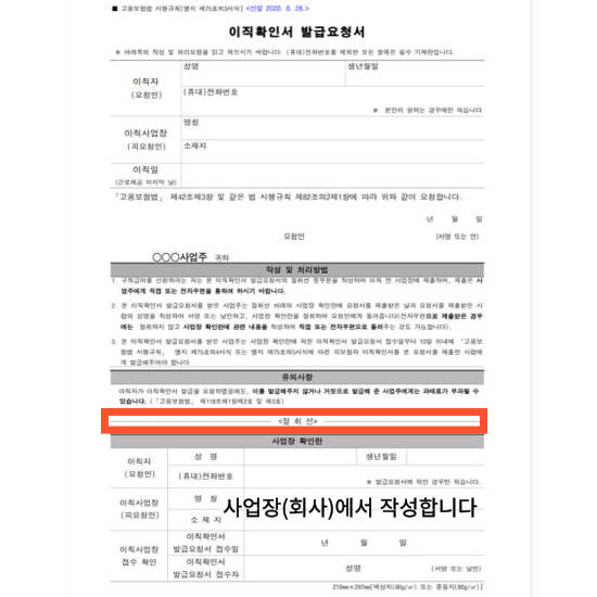 이 문서는 주로 이전 직장에서 발급하며, 사업주가 작성하여 고용센터에 제출하는데