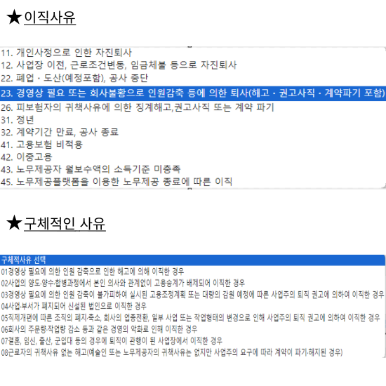 고용보험 자격상실사유와 이직코드가 반드시 일치해야 합니다. (이미지 참조)