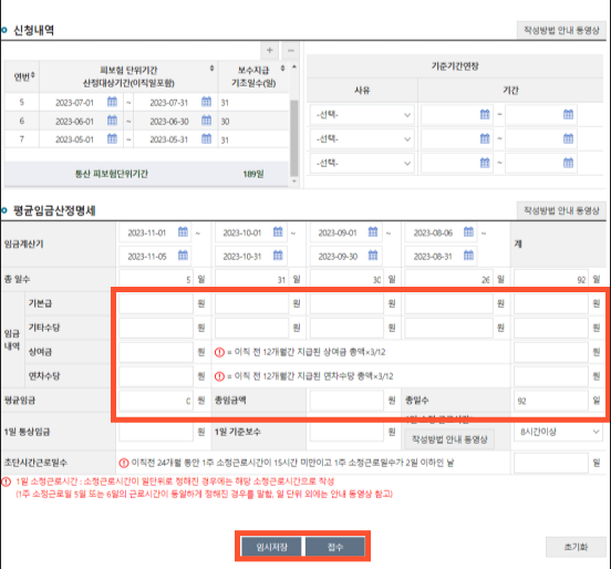※구체적 이직 사유는 피보험자격상실신고시 입력했던 사유와 동일해야 합니다.