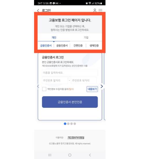 ▶고용보험 APP을 설치합니다.