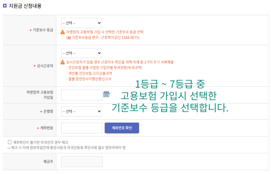 자영업자의 고용보험은 자영업자 사장님이 직접 기준 보수액 7등급 중 하나를 선택할수 있습니다.