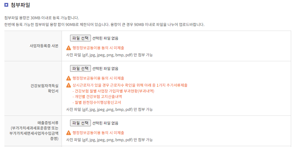 ※ 만약. 행동정보공동이용시스템 동의했을경우, 필요서류는 제출하지 않아도 됩니다.