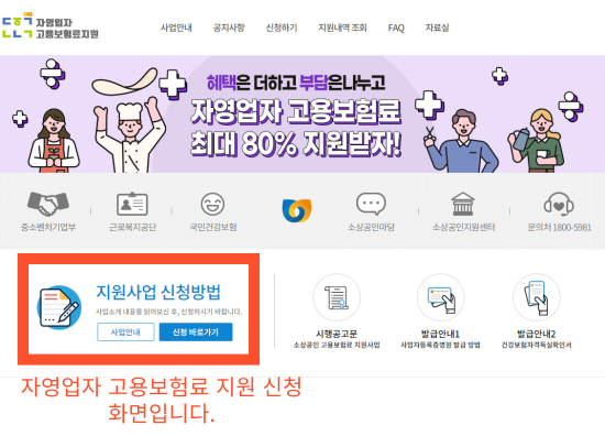 ▶자영업자 고용보험료 지원 홈페이지 접속