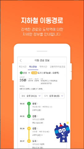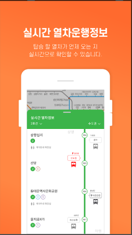 출발역과 도착역을 입력하면 최적 경로와 열차 위치를 실시간으로 확인할 수 있습니다.