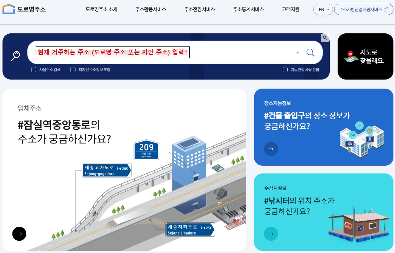 가장 정확한 방법은 ‘주소정보누리집’을 이용하는 것이에요.