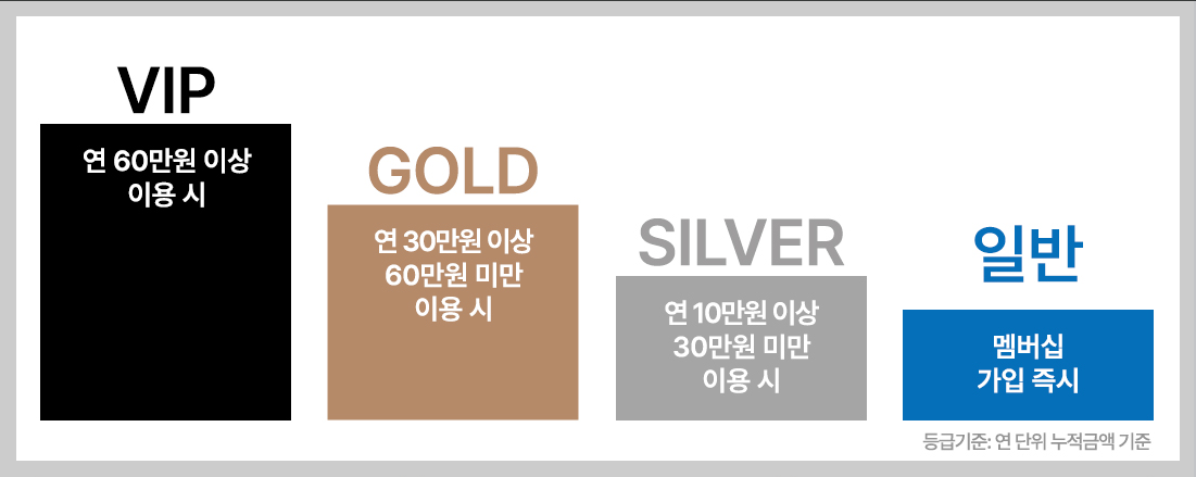 | 등급 | 연간 이용금액 | 혜택 |