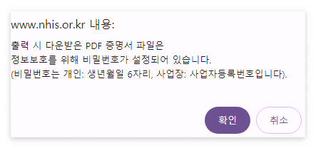 ※4대보험 완납증명서는 정보보호를 위해 비밀번호가 설정되어 있습니다.