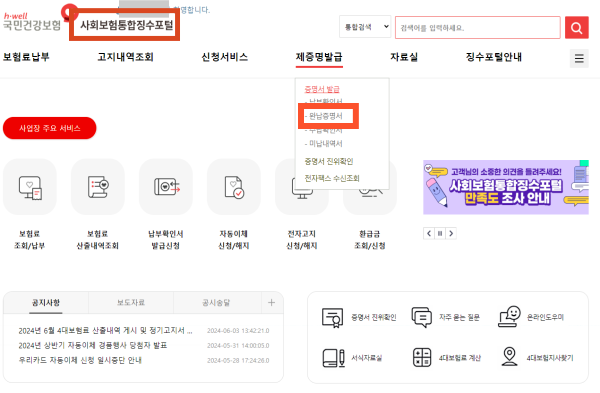4대보험 완납증명서 인터넷 발급 방법/개인, 법인
